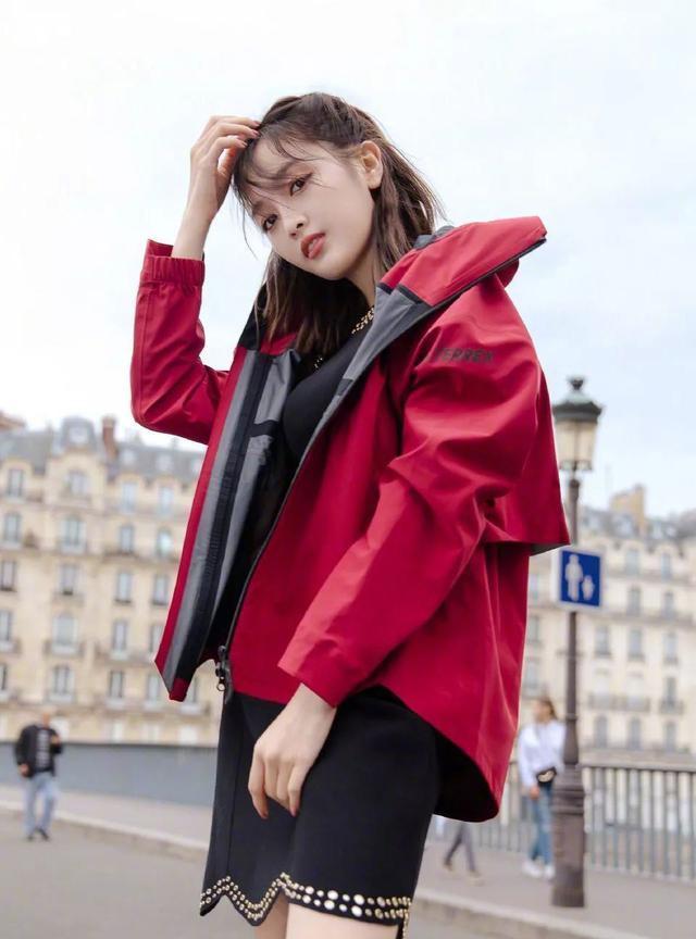 年輕人選擇沖鋒衣,不僅看上去帶有愜意休閑美,同時也會給人感覺一種灑脫動感的運動風。色彩鮮艷的單色沖鋒衣更能突出個性,沖鋒衣常用紅色面料,這類款式非常適合皮膚白皙的妹子們來穿,能夠突出服裝的艷麗色調之美,同時也要總體穿著看起來更加就高端。內搭黑色簡約打底衫,突出休閑氣息。