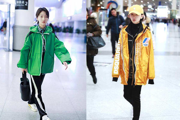 從大部分明星的選擇中不難看出,超大碼是最明顯的一項標準!其中最受寵的Balenciaga就在最近三季的女裝中玩遍了沖鋒衣的各種花樣,減少繁復的功能配件,加入更時髦的超大廓形,憑一己之力將原本平平無奇的沖鋒衣變為時尚圈一霸。除了女明星們偏愛的卡其色,另外幾款藍綠色沖鋒衣也被街頭時髦人穿了個遍。
