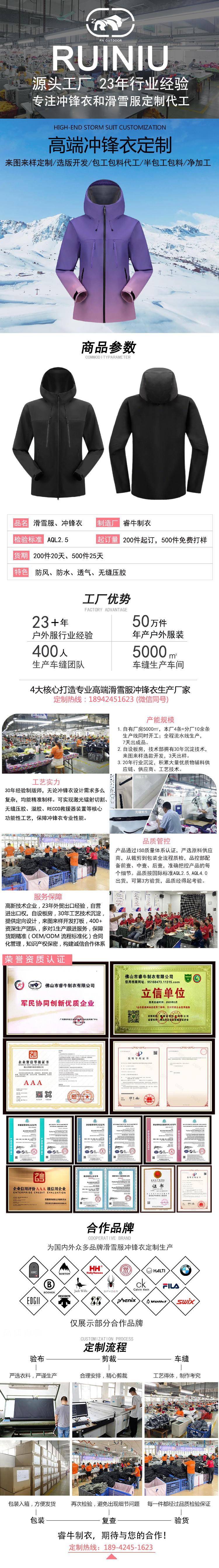 持續(xù)23年專注沖鋒衣、滑雪服定制加工廠家