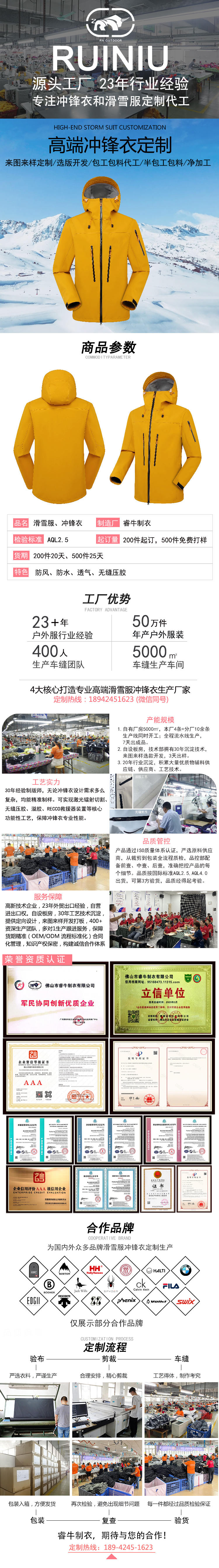持續(xù)23年專注沖鋒衣、滑雪服定制加工廠家