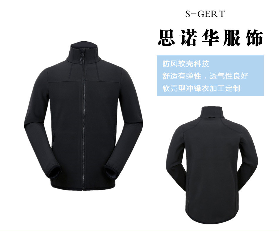 防風透氣軟殼型沖鋒衣定制—思諾華服飾