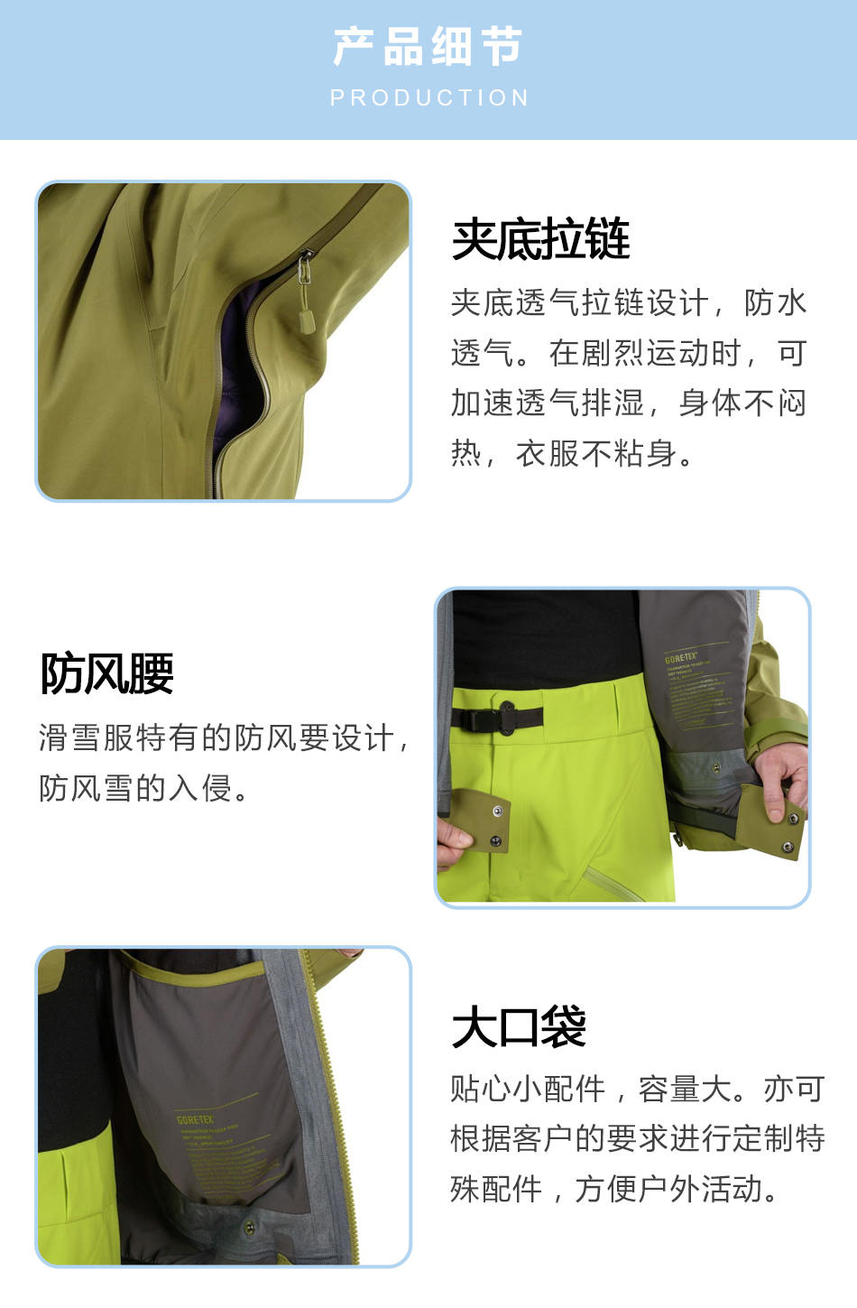 防風腰:團體滑雪服生產(chǎn)特有的防風腰設計,防風雪的入侵。