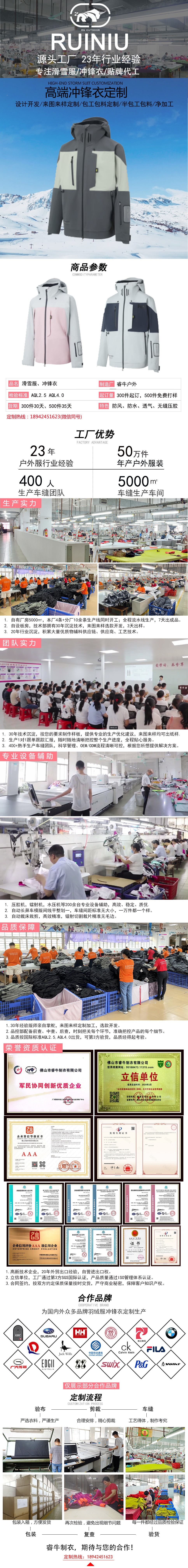 廣東睿牛戶外用品有限公司:專注沖鋒衣、滑雪服、風衣、夾克的梭織服裝定制加工廠家